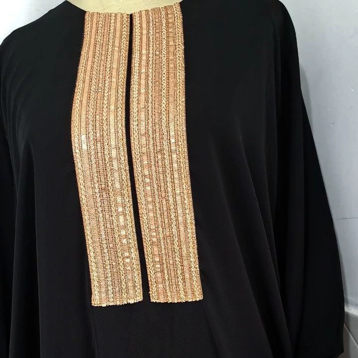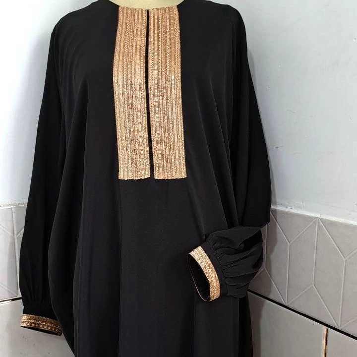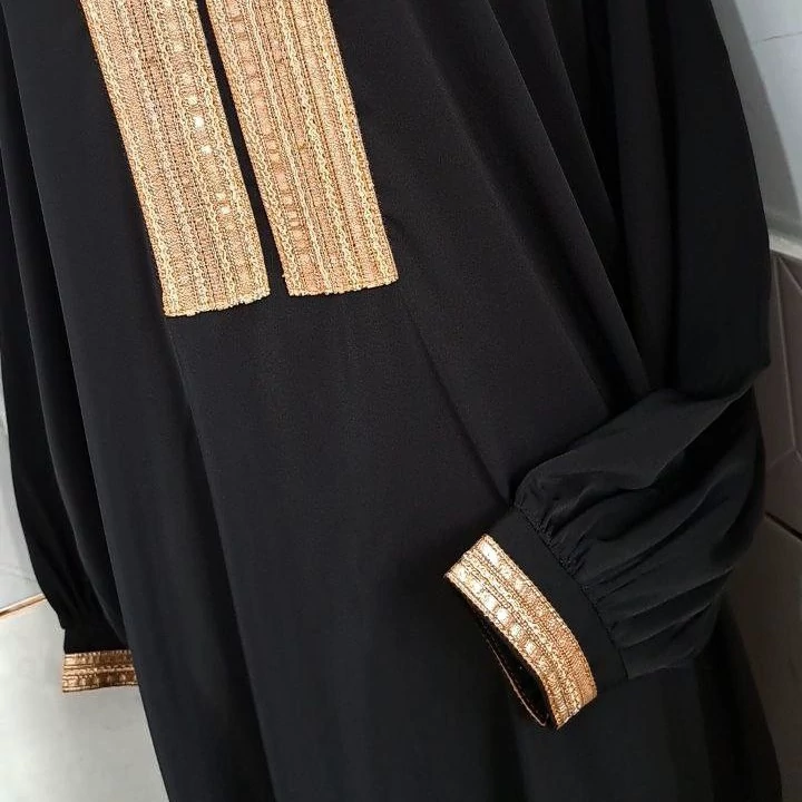شناسه: #99869 s 🌹نام: عبا طلاکوب ✅سایزبندی:فری تا50 ✅قد کار 135 ✅دورسینه:130 قد استین حدود 60 دور بازو حدود 44 ✅دارای بند تنظیم 🌹جنس: الیزه درجه یک 🌹رنگ بندی: مشکی