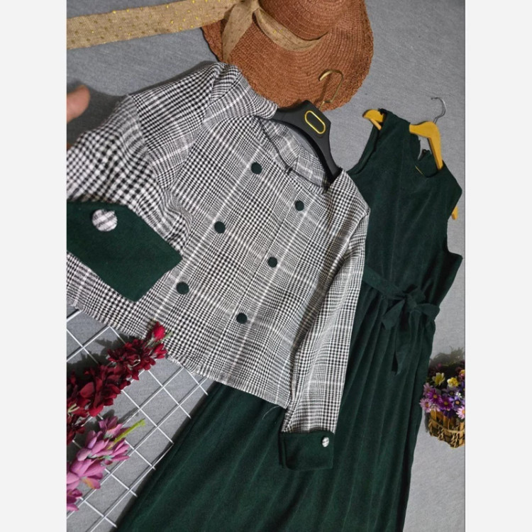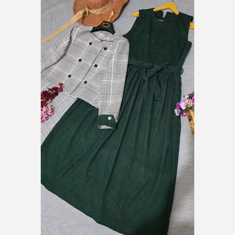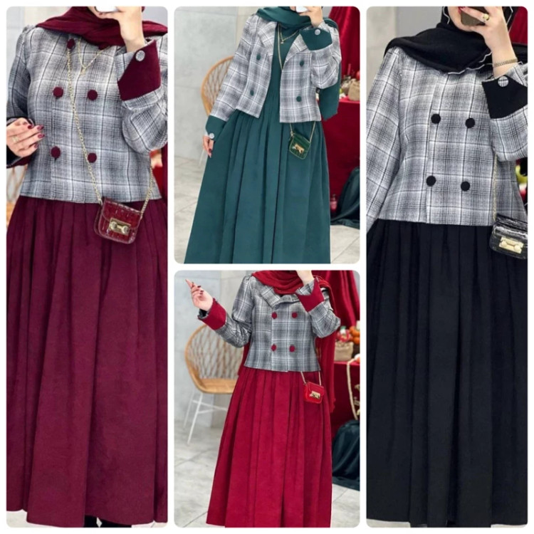 ❄❄❄کالکشن یلدا❄❄❄ شناسه : #97940 az نام : کت و سارافون نارون 💖 جنس : کبریتی ریز و ریما💖 رنگ بندی : زرشکی, سبز,مشکی- قرمز💖 سایز ها : فری سایز تا46🩷 ⚡️قد سارافون 125 ⚡️دور سینه 108 ⚡️قدکت50 ⚡️قدآستین 58 ⚡️دکمه ها کاربردی ⚡️دارای کمربند جهت تنظیم سایز کمر