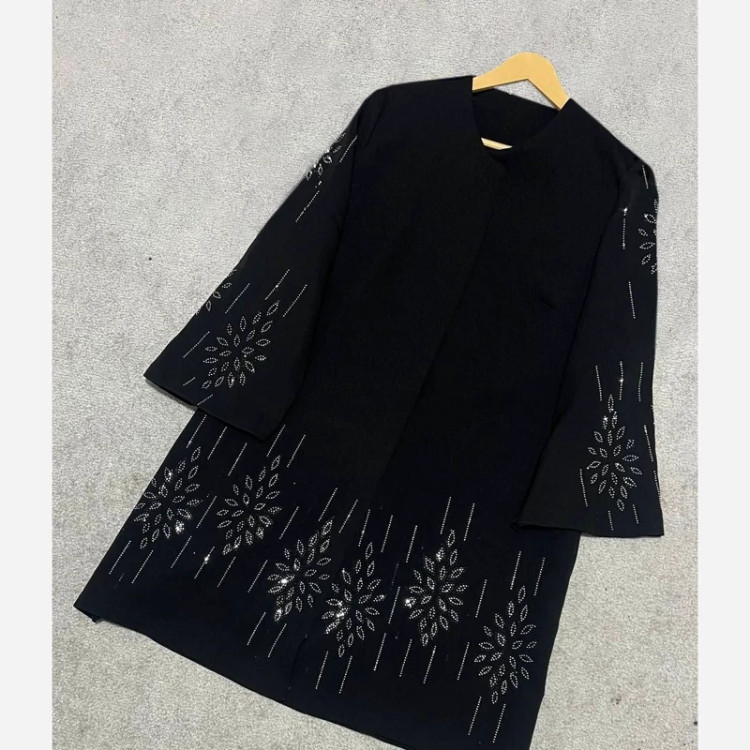 🆔 شناسه : #77663 ri 🌹نام : مانتو مجلسی گندم 🌹قد حدود92 🌹قد استین از سرشانه 55 🌹سایز 46تا52 🌹دور سینه114 🌹جلوی کار غزن دارد و کاملا لایی کار شده 🌹جنس : مازراتی درجه یک 🌹 رنگ بندی : مشکی -