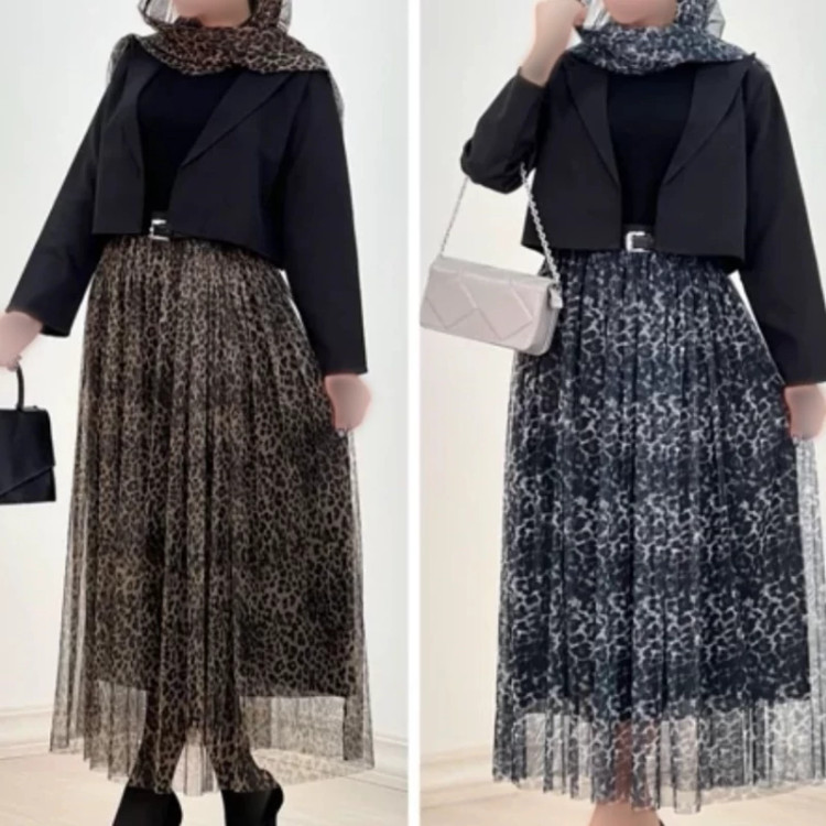 ست کت و دامن و شال رویا جنس کرپ مازراتی و تور