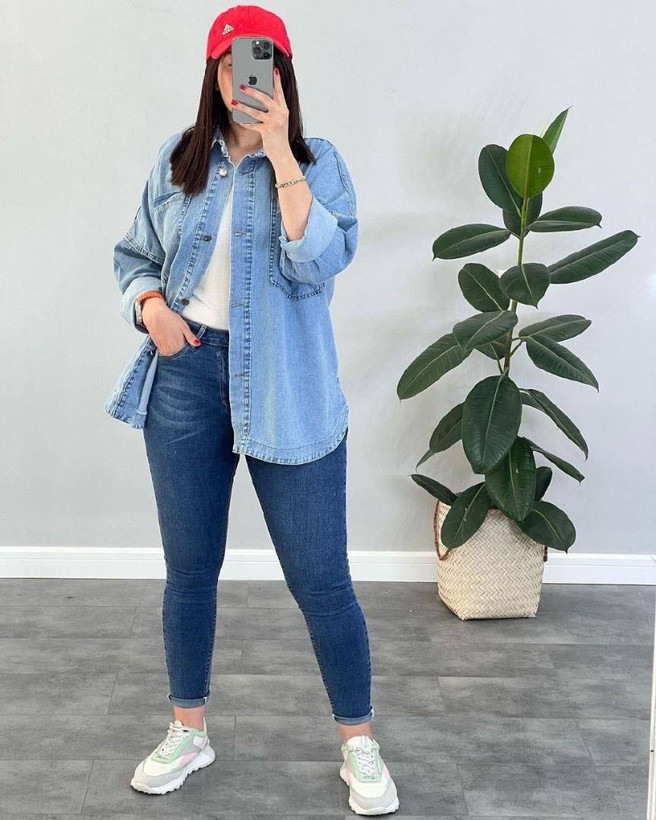 شناسه: #100192 sh 🌹 نام: مانتو جین ❤️قد جلو75 ❤️قد پشت 83 ❤️دورسینه120 ❤️قد استین از یقه 70 ❤️فری38تا48 🌹 جنس: جین اصلی سنگشور شده 🌹رنگ بندی: طبق اسلاید