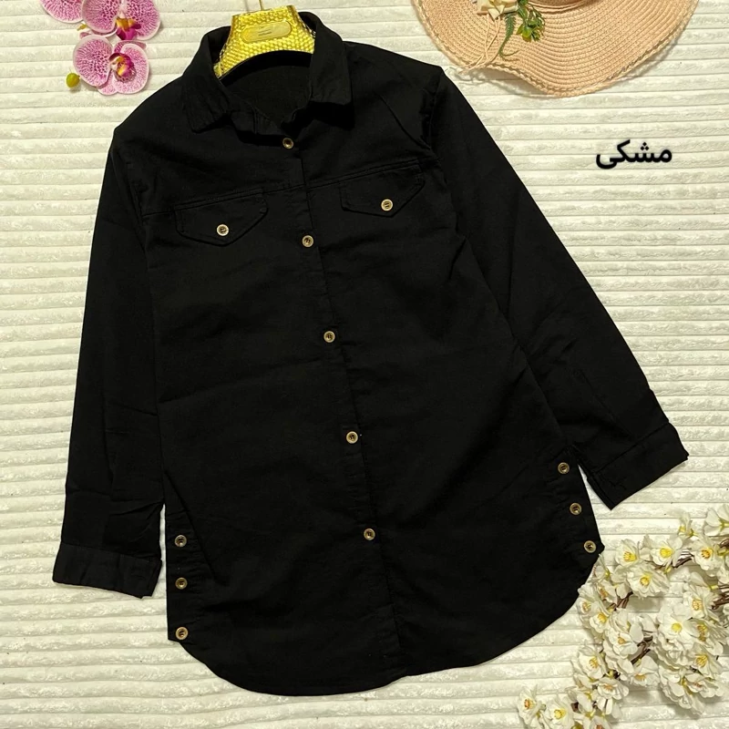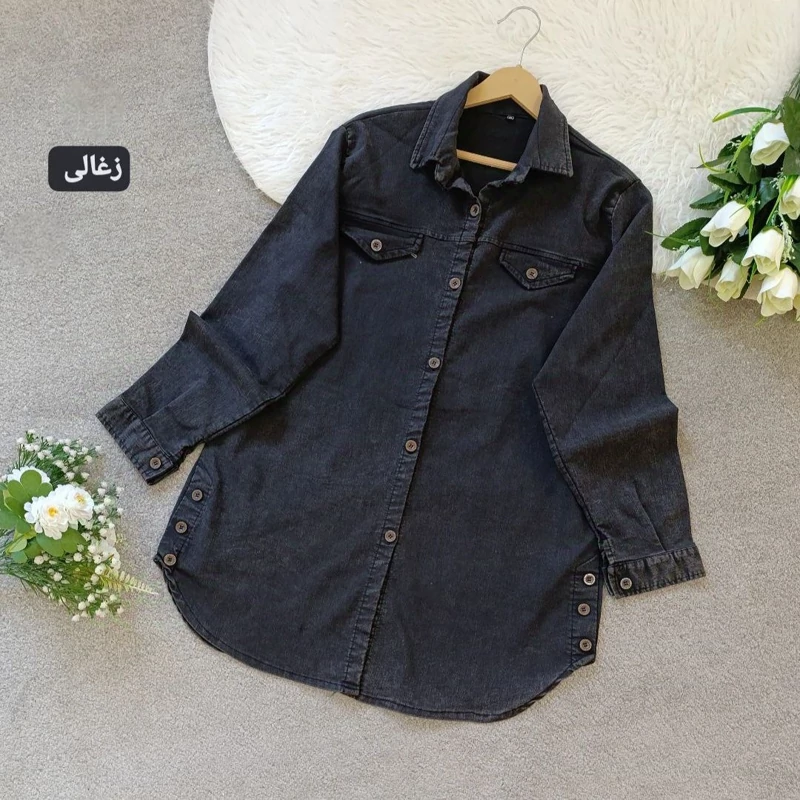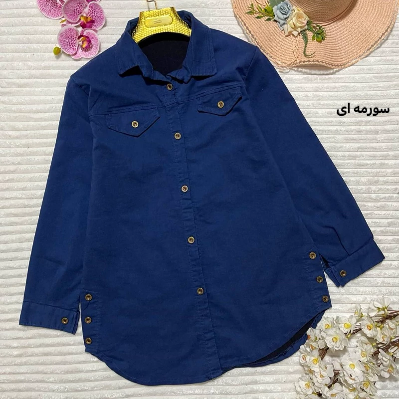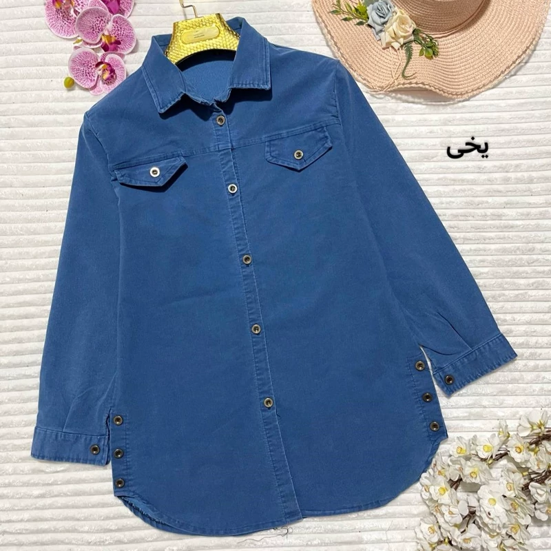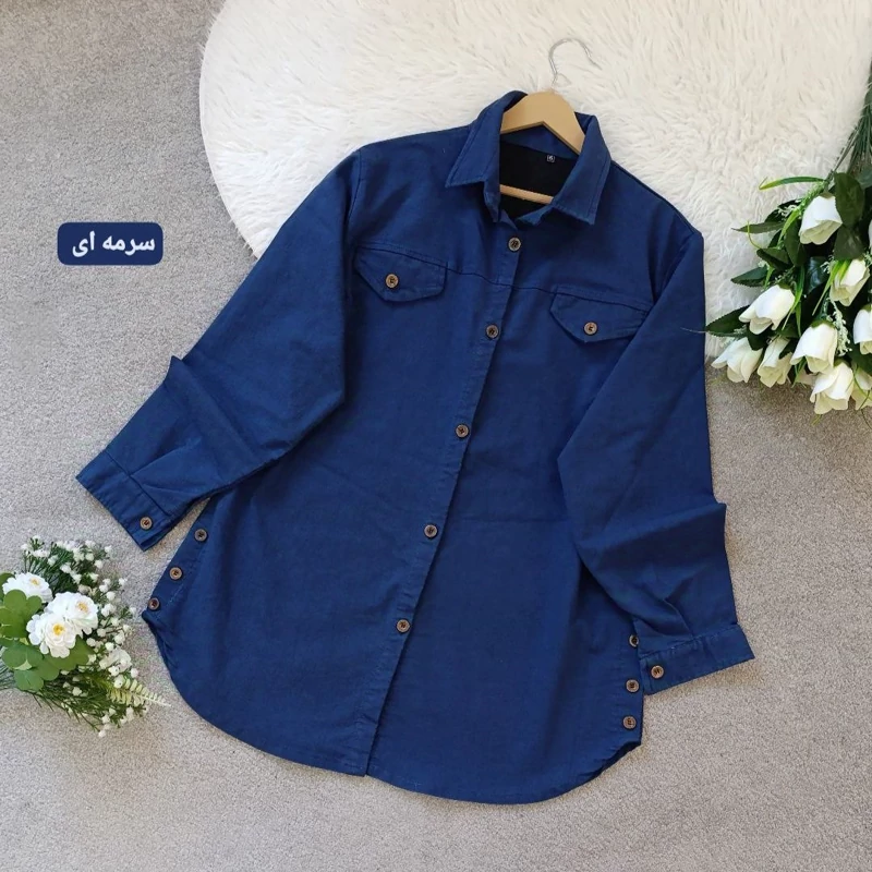 🌹 تونیک مانتویی 🌹 جنس جین نیل کاغذی 🌹 رنگ بندی طبق اسلاید 🌹 سایز دو 44_48 (دور سینه حدود 112سانت) دور بازو 45 🌹 سایز یک 38-44 (دور سینه حدود 104سانت) دور بازو 42 🌹قد آستین حدود 58 سانت