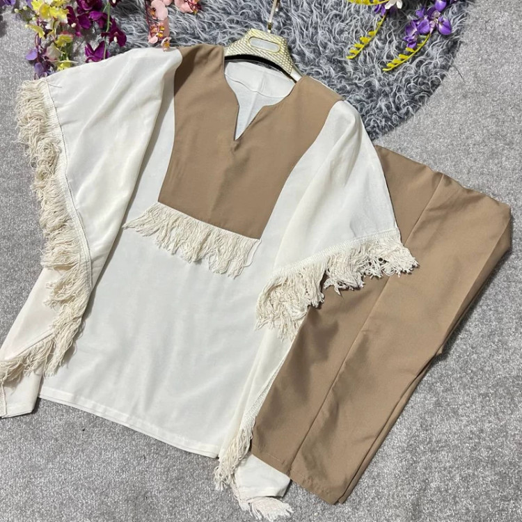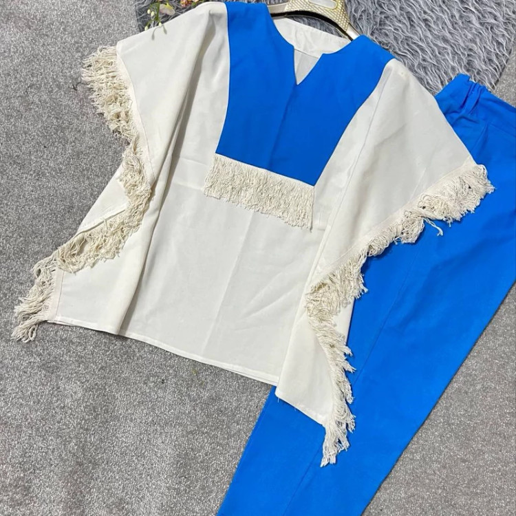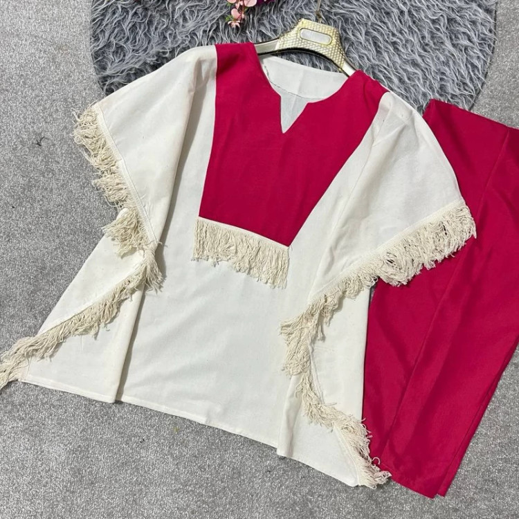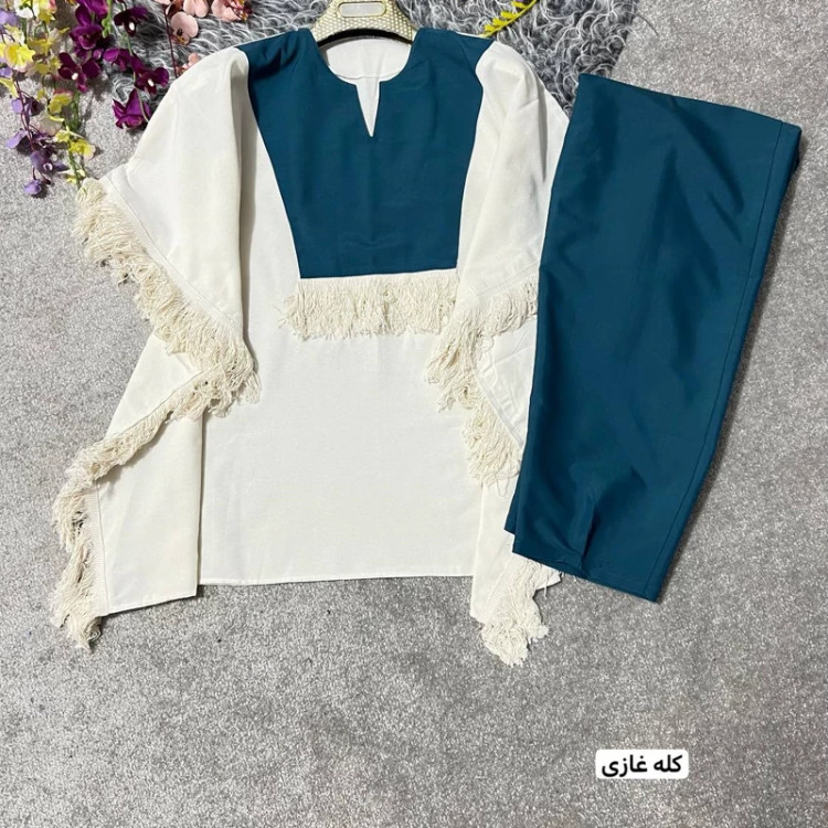 ست مانتو شلوار نازدونه جنس پانچ لنین و شلوار تترون