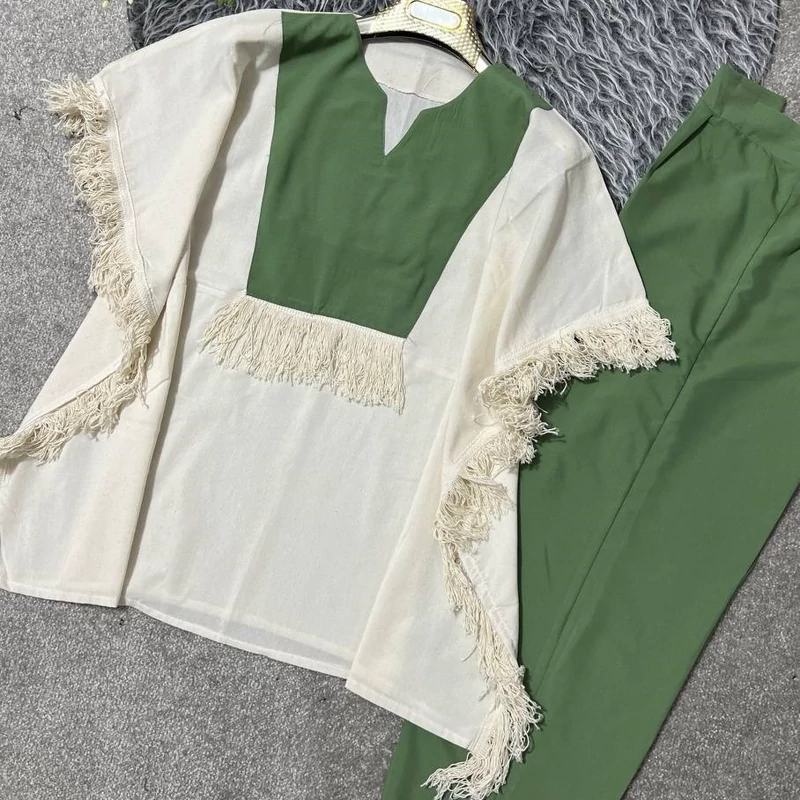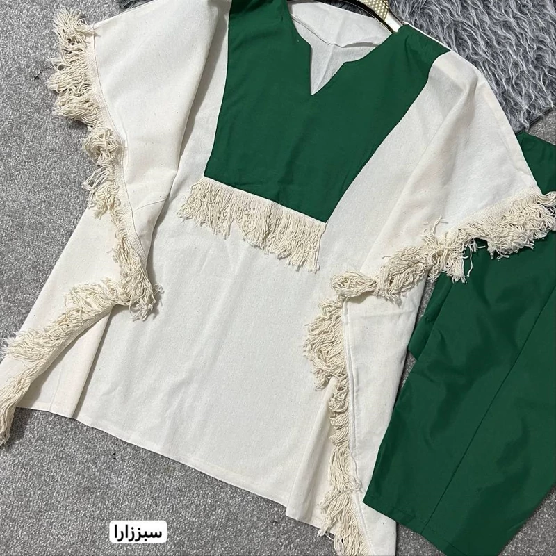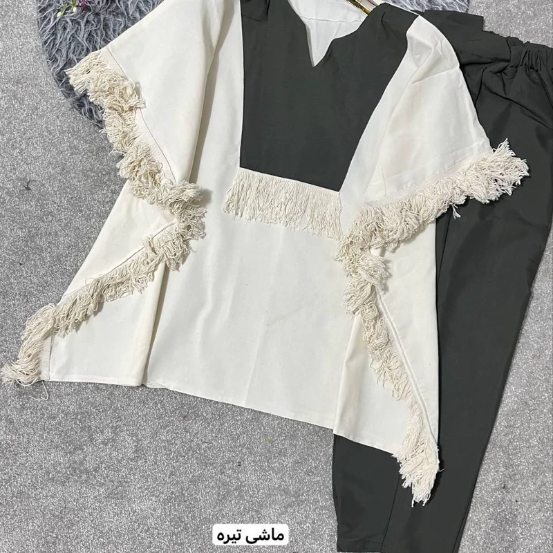 ست مانتو شلوار نازدونه جنس پانچ لنین و شلوار تترون